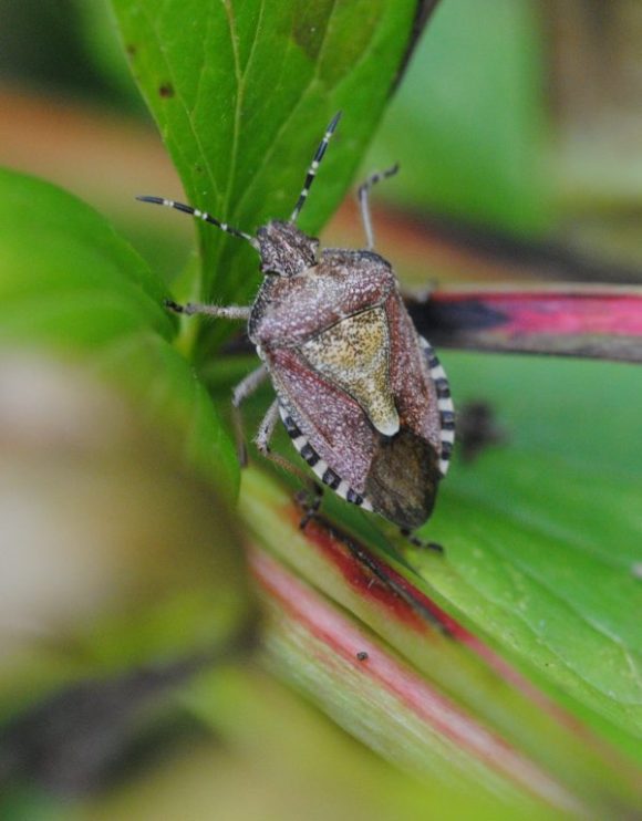 Hairy shield bug on peony, Witney, September 2021