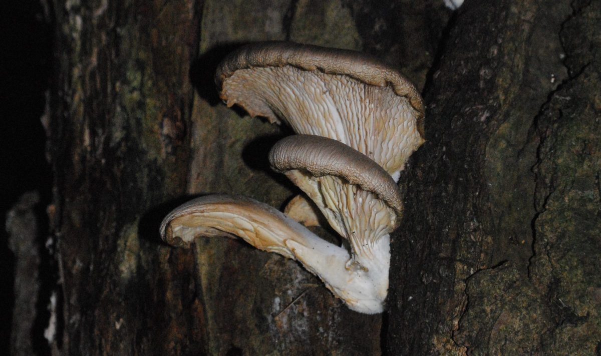 It was nearly dark but the photograph was enough to identify them as a species of Oyster mushroom, though not enough to know whether or not they were an edible variety. Interestingly, a few weeks earlier the same tree had been host to a very large clump of Dryad’s Saddle but they had completely vanished.