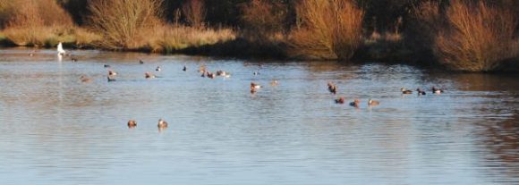 Grey and damp at first, it had turned into a lovely afternoon. There was not much on the fishing lakes except Coots, Tufties and a Great White Egret in a tree by the largest lake. There were, however, a large number of Red-crested Pochard on one of the publicly accessible Tar lakes. I estimated over fifty and I later saw that someone had posted 72 on the Oxon Birding blog. They are always on the same lake and rarely seen on the reserve proper. Curiously the same is true at Standlake: I have never seen one on Pit 60 (the reserve) but they used to be frequent on the adjacent lakes. I have no idea why that should be; there must be something about the water depth or perhaps they don’t like sharing with other species.