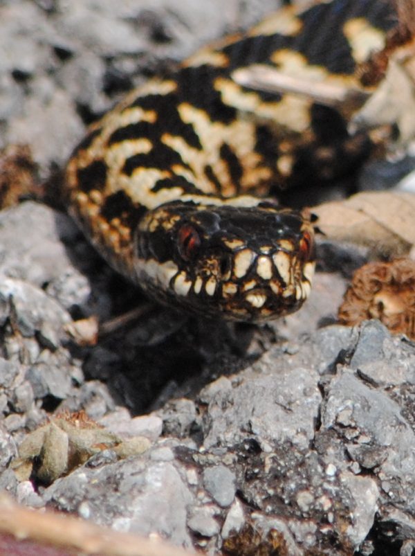 Adders are cold tolerant and are the only snakes found in the Arctic circle. Even so, they appreciate warmth and the Greenham site is ideal for them as the waste concrete warms up quickly and allows for basking while at the same time offering plenty of cover.