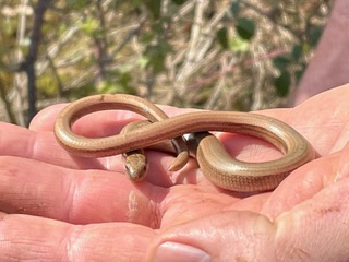 On our return to the car park, Neil showed us a slow-worm, which he found under a metal sheet.