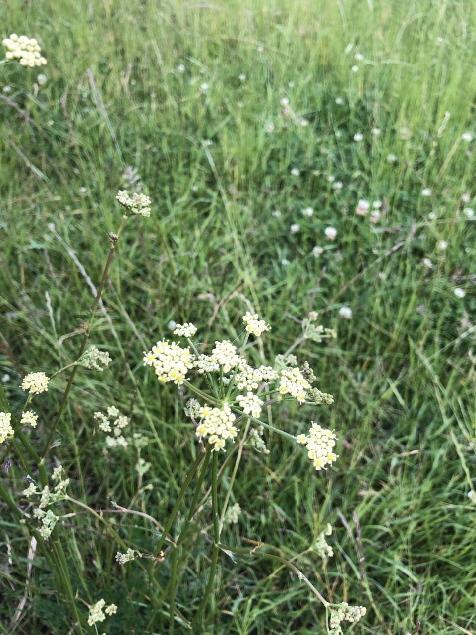 Another plant we saw, typical of this type of floodplain meadow, was the umbellifer, Pepper-saxifrage. It has umbels of golden to yellow-green flowers and delicate leaves. It is a member of the carrot family; its name is misleading as it’s not related to any flower in the saxifrage family nor does it taste of pepper.