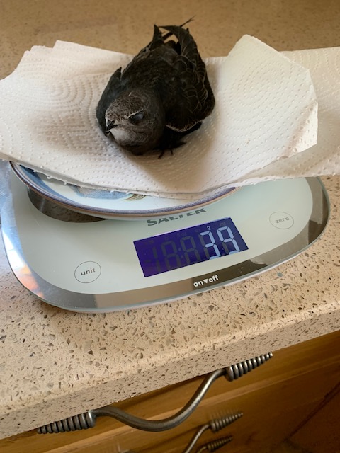 I phoned Gillian Westray, an amazing lady who gives up her summers to look after Swift casualties of the breeding season, also Swallows and Martins. It is specialist work. Gillian has raised over 1,000 swifts over the years. I took one to her last year (see here) and she successfully released it after a few weeks. She told me to bring it down and that – amazingly – she only had three down there, due mainly to this exceptional weather.