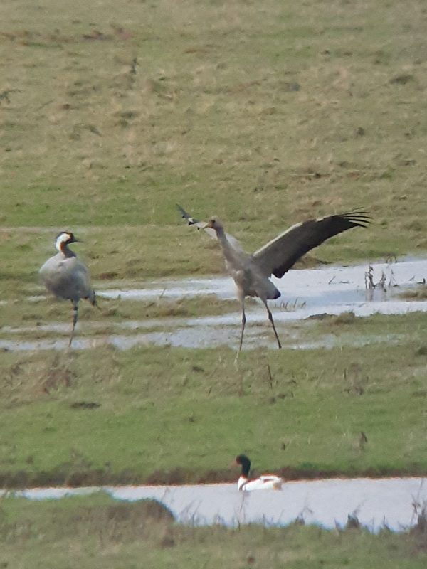 After a relaxing lunch in the restaurant, we headed down to the Zeiss Hide and from the upper floor had good views of six very impressive Cranes which flew in and a couple of Peregrine Falcons, one on a post and another just sat way across on the river bank. They couldn’t have been hungry because they didn’t move. After a heavy downpour had eased off, about 3pm, we headed back to the South Hide. Here we added Gadwall to our list, some Cormorants, 20-plus Avocets; there were lots of Pochards and Shovelers.