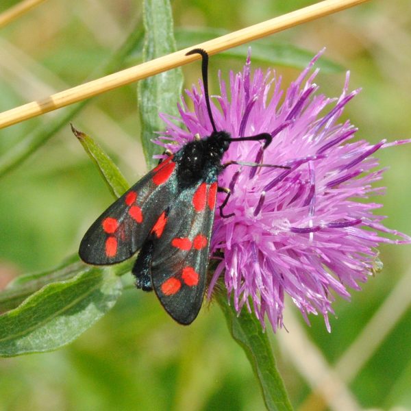 On this sobering note, we set off to explore a varied mix of habitats around the town: Charlbury’s cemetery, allotments, playing fields, and the sloping glades and meadows of the Wigwell Nature Reserve. Our first stop was a buddleia on a garden lane, where we were cheered to find half a dozen different butterflies, including red admirals and peacocks, large whites, commas and meadow browns. A promising start. Later we added to the list with small coppers, gatekeepers, small- and Essex-skippers, tortoiseshells, brimstones and marbled whites, as well as a few interesting moths (6-spot burnets and a hummingbird hawkmoth).