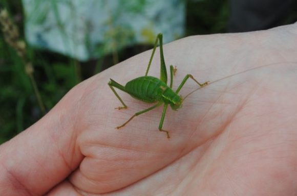 Before everyone dispersed, we had a group photo outside, overlooking the lovely view of the Evenlode valley. The finishing touch for me was a speckled bush cricket that hitched a lift on someone’s shoulder and was removed outside to have its portrait taken before being released back into the long grass!