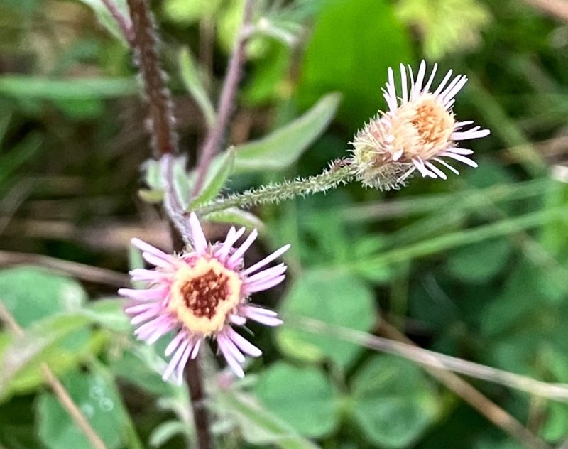 Maggie Collins writes: On a short walk to the Windrush Valley recently we spotted some Blue Fleabane, Erigeron acer, still in flower. There were plenty of seedheads about so it must also have been flowering at its normal time of July and August.
