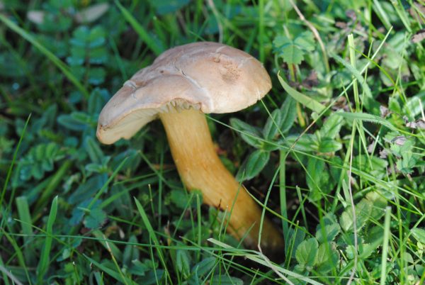 Approaching the open hillside through woodland we spotted shaggy parasols and tawny funnels – making a promising start. Emerging on to the hilltop we were confronted with a magnificent view and a gathering of about twenty red kites wheeling over the slope.