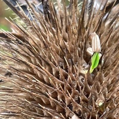 Walking was easy, along a gravel path, and a pleasant change from boggy conditions everywhere else. The rain brought interest, however, encouraging the last remaining seeds in teasels to germinate in situ to form tiny vivid green leaflets.