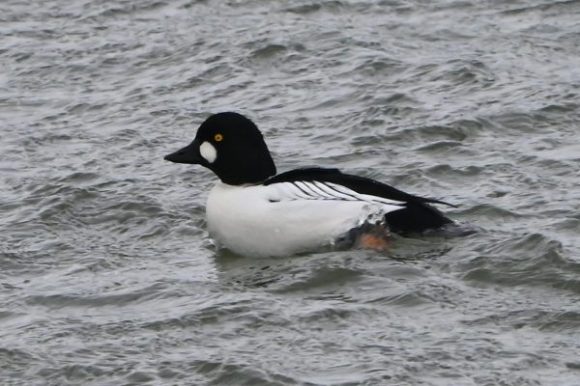 When Sue and I went there on the 21st of January – a windy Sunday afternoon – we were pleased to see several Goldeneye amongst the many Wigeon, Teal, Pintails and Coots. One of them was very obliging and came close enough for us to get a good look at him.