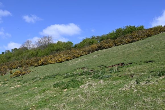 On 21 April 2024 eight of us embarked on a somewhat risky trip to Barnsley Warren in Gloucestershire, prepared for every challenge from safely parking in a small lay-by right next to a racetrack of a road (The Fosse Way), to climbing down steep steps on a half-hidden bank beyond a hedge, to climbing up and over a rickety ladder stile to land on the side of a precipitous hillside, where the only tracks were those formed horizontally by the age-old tread of sheep.
