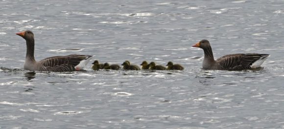 There were several of families of ducks and greylag geese. A marsh harrier flew in and, for a while, seemed to have its eye on the ducklings, but left them alone, at least while we were there.
