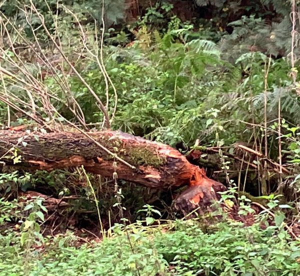 Trail cameras are installed along the brook to record beaver activity. Leoni showed us several photographs of the beavers in action as well as a variety of other wildlife observed, such as a pine martin and fox. Because the fencing prevents larger herbivores from entering, the vegetation grows up fast and has to be cut back fairly regularly.