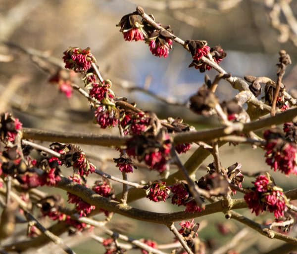 We did see them, but they weren’t at their best. However, we did see lots of daffodils and crocus. One tree that caught everyone’s attention at the back of the big house was the Persian Ironwood, with its beautiful crimson flowers. There were scarlet elf cup fungi and various alliums in the woods (NIF).