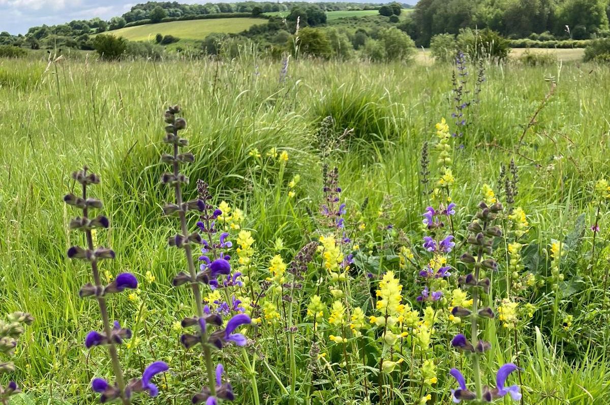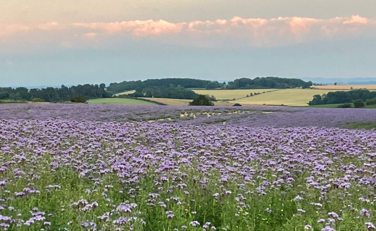 Seven members of the Field Club plus one, very welcome, visitor met in Swinbrook churchyard for an evening walk before looking for glow-worms. We had a fine evening and heard or saw several birds, including Stock Dove, Tawny Owl and Barn Owl. We stopped to peer at the River Windrush just past the Church at Widford before heading up the hill track that took us past Manor Farm and the site of the medieval village. The fields looked magnificent as they were planted with Phacelia tanacetifolia (sometimes called fiddle neck).