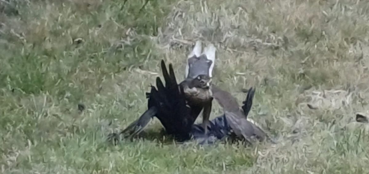 Last year one of John’s neighbours sent him a photo of a sparrowhawk in his garden sitting on top of a squirrel trap, where a blackbird was taking refuge, and you can read about it in his blog from last June. This year the same neighbour spotted another sparrowhawk on a more ambitious hunting trip.