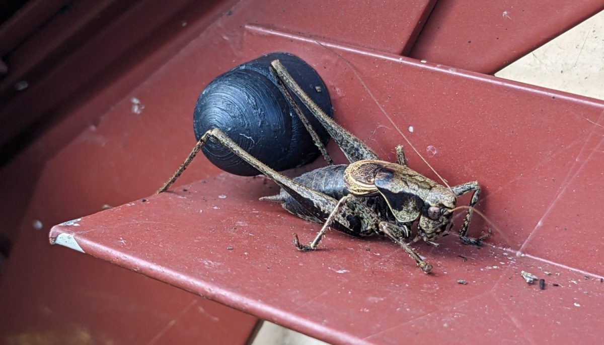 Jenny Insch spotted two dark bush crickets in her greenhouse at the beginning of October, and sent me a photo and video. What were they up to?