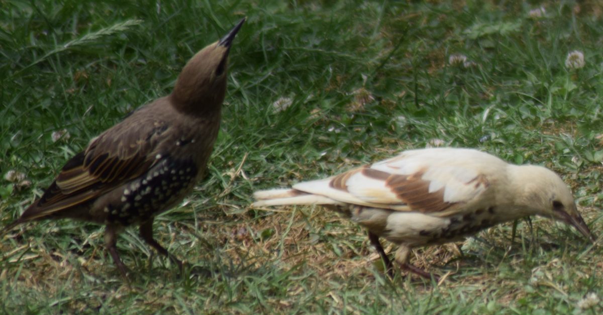 I got rather excited today, I was eating my breakfast in the back garden at 6:30am when I spotted this unusual starling amongst the flock of up to 150 starlings I regularly get on my back lawn in Brize Norton.